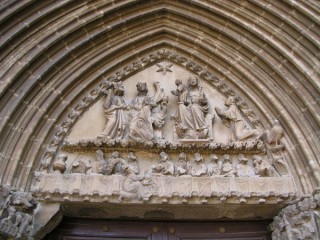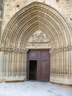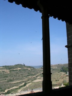 Le village d'Ujué est situé à une soixantaine de kilomètres de Pampelune. Il est bâti sur un site exceptionnel qui en fait un promontoire depuis lequel la vue est immense, sur les Pyrénées mais aussi sur les plaines du sud. Non seulement le village est intéressant par sa position, mais il possède également une très originale et très intéressante église Santa Maria, construite du XIIème au XIVème siècle et où l'on peut admirer des sculpture gothique de très belle facture.
