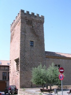 Photo de l'Eglise Santa Maria la Real à l'entrée de Sanguesa - Portail sculpté du XIIème siècle - Clocher fortifié du XIVème siècle