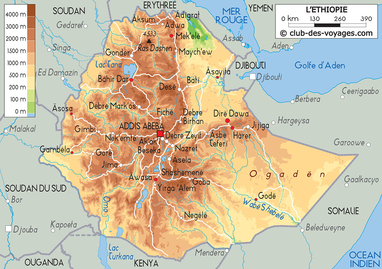 Nos différentes cartes de l'Éthiopie à explorer: carte physique, carte routière, vue satellite. Pour tout savoir sur la géographie de l'Éthiopie.