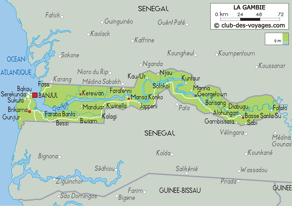 Nos différentes cartes de la Gambie à explorer: carte physique, carte routière, vue satellite. Pour tout savoir sur la géographie de la Gambie.