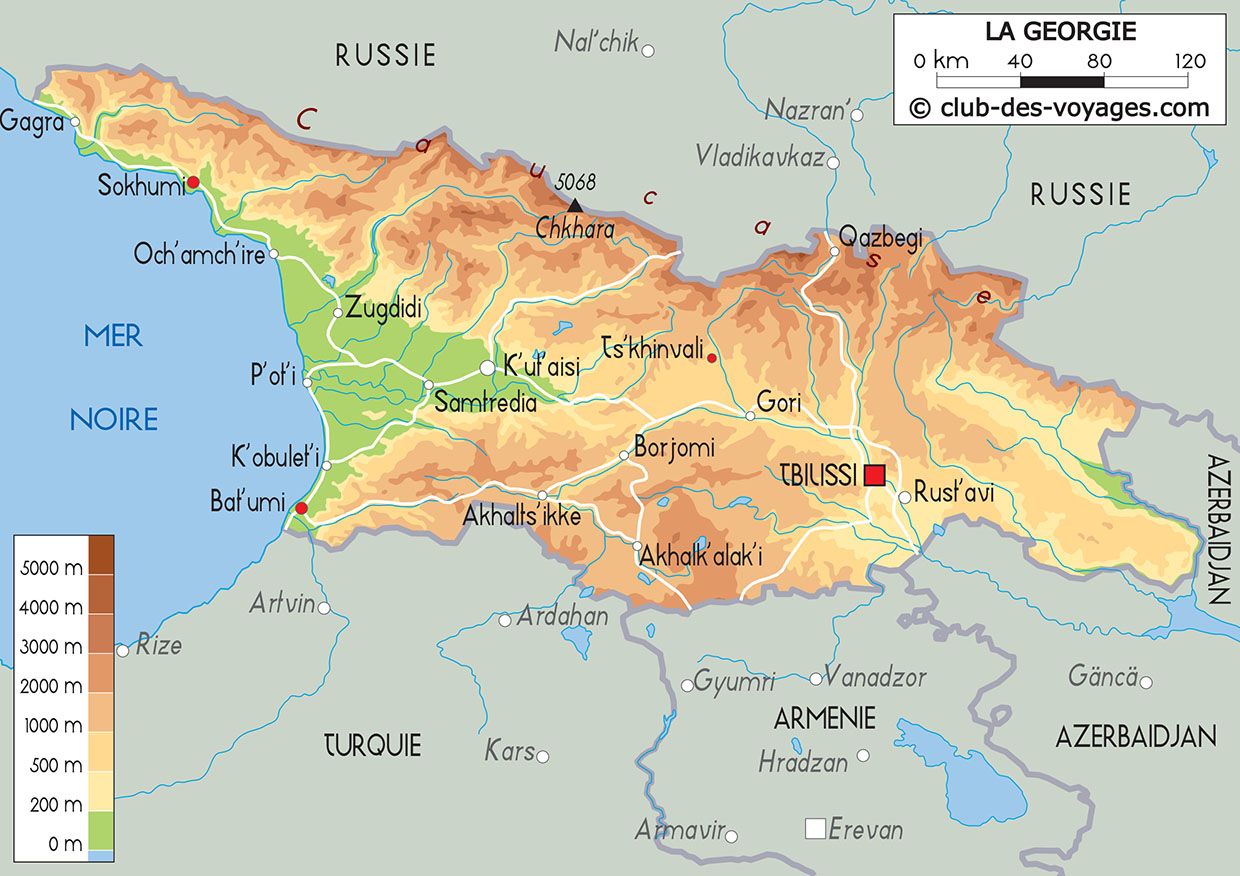 Nos différentes cartes de la Géorgie à explorer: carte physique, carte routière, vue satellite. Pour tout savoir sur la géographie de la Géorgie.