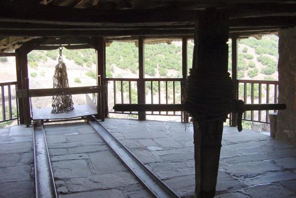 Intérieur de la tour d'approvisionnement du monastère de Varlaam. La tour servait à monter les marchandises et le matériel destinés au monastère.