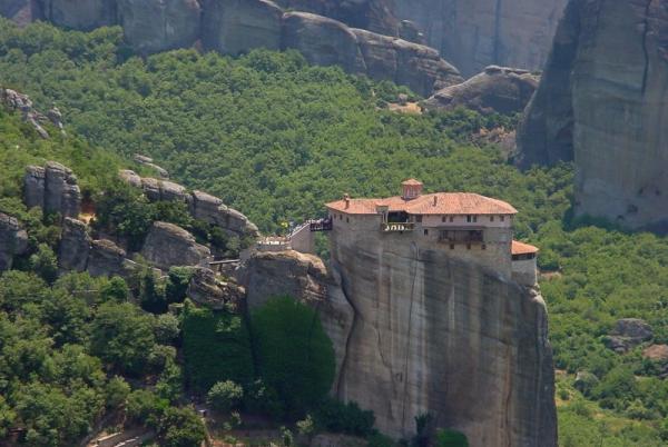 Les tours rocheuses des Météores surplombent d'environ 300 mètres la vallée environnante. Elles ont été taillées au fil du temps par le ruissellement [En savoir plus...]