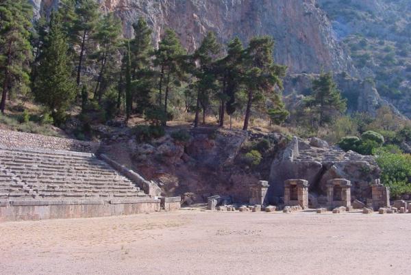 Situé également à l'écart du sanctuaire, au milieu des bois, le stade est doté de gradins en pierre construit au IIe siècle après JC par Hérode Atticus. Il pouvait accueillir jusqu'à 6500 spectateurs.