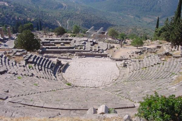 Construit au IVe siècle avant JC, le théâtre de Delphes est l'un des mieux conservé de Grèce. La scène est volontairement située en contrebas pour permettre aux spectateurs d'admirer la vue splendide sur la vallée. Sa capacité est de 5000 places.