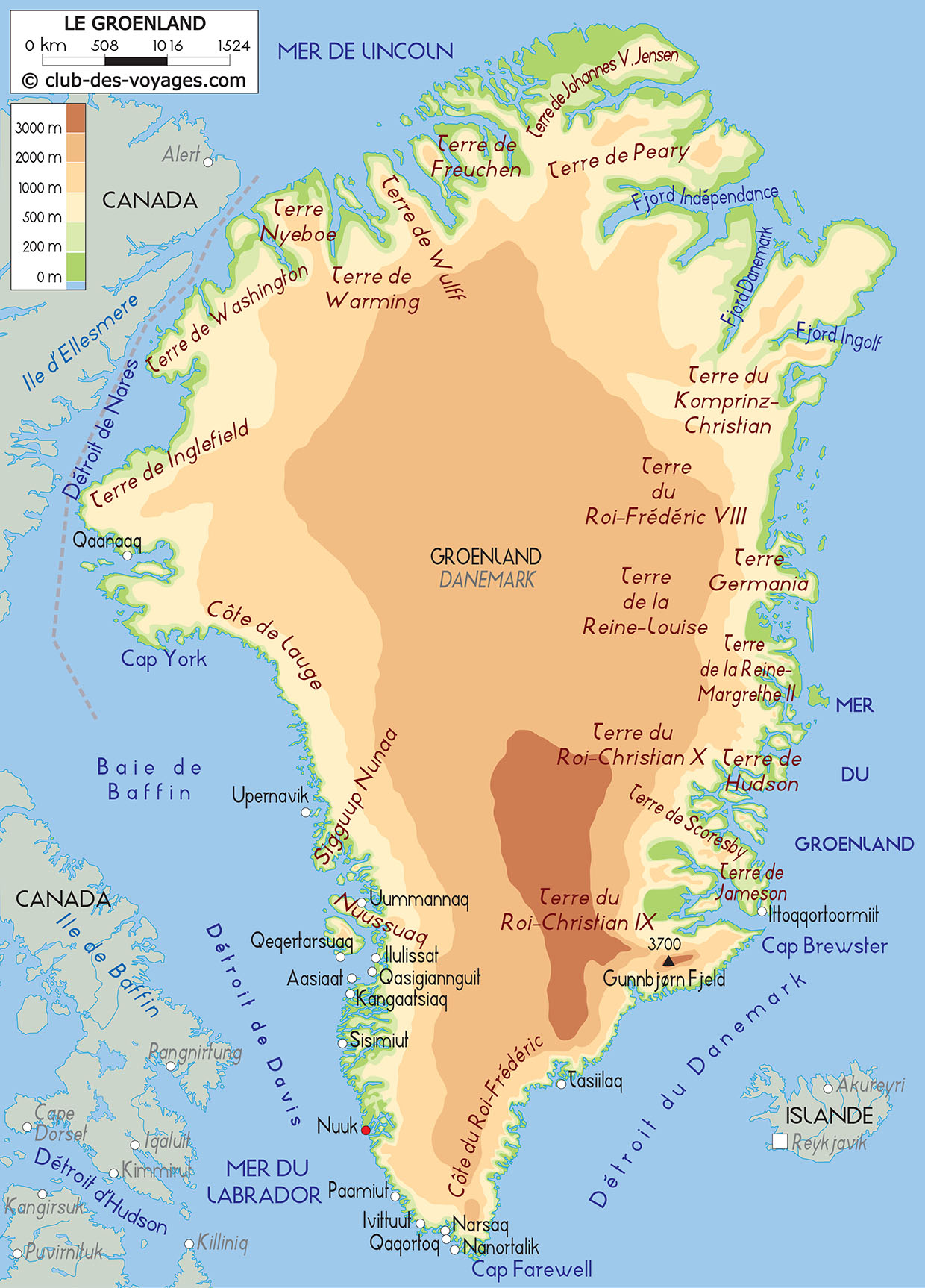 Nos différentes cartes du Groenland à explorer: carte physique, carte routière, vue satellite. Pour tout savoir sur la géographie du Groenland.