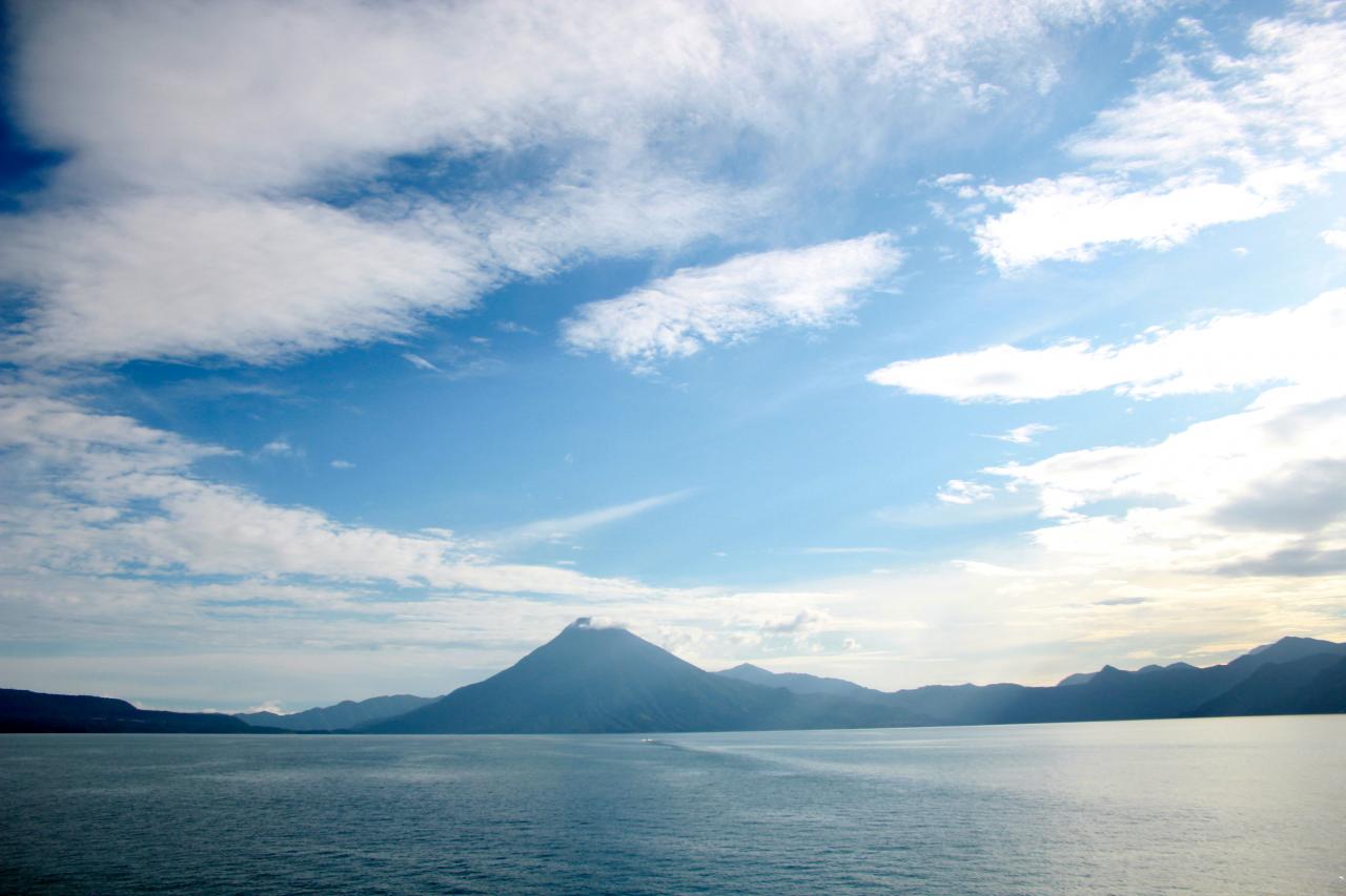 Photo du Lac Atitlàn prise de Panajachel, avec vue sur le Volcan San Pedro.