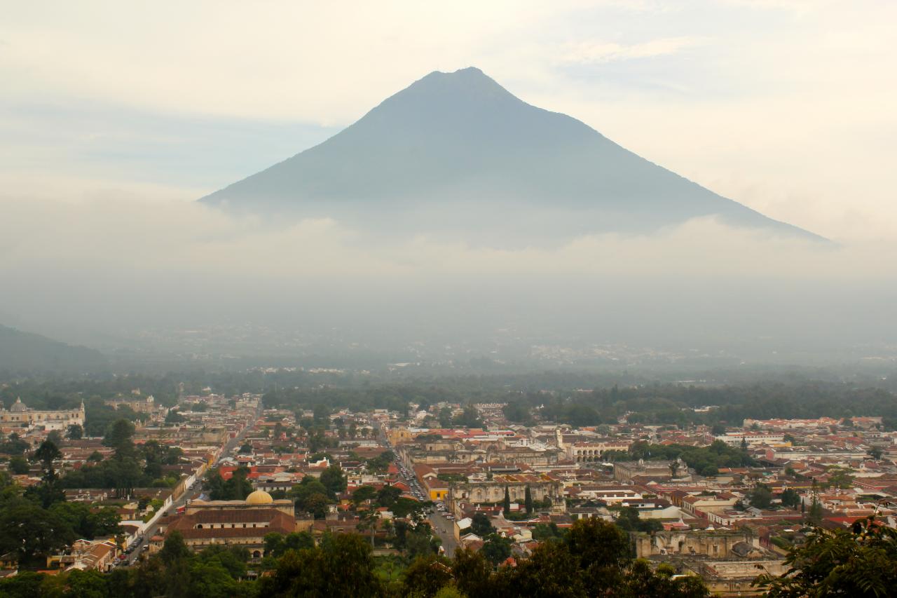 Photo prise du mont Cerro de la Cruz: le volcan Agua surplombant Antigua.