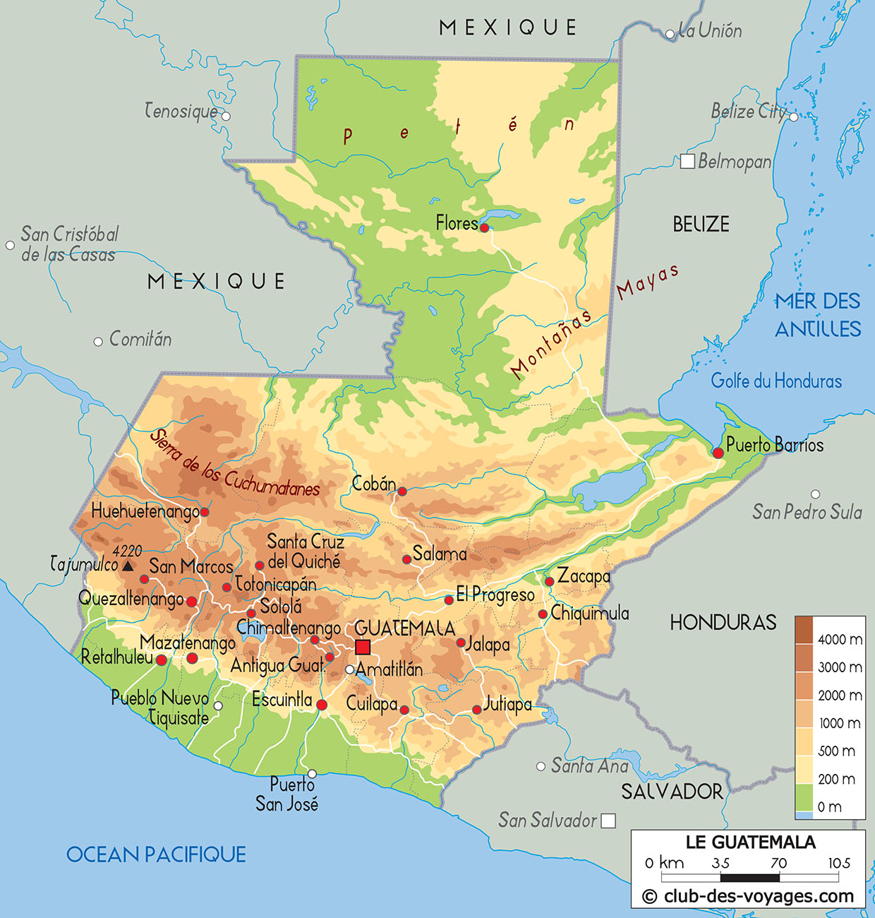 Nos différentes cartes du Guatemala à explorer: carte physique, carte routière, vue satellite. Pour tout savoir sur la géographie du Guatemala.