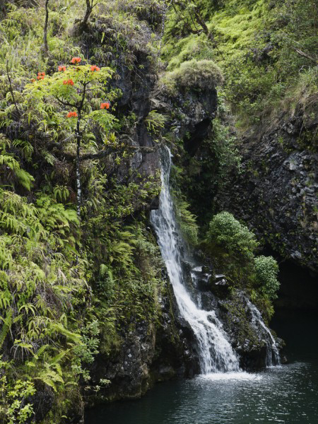 Paysages intérieurs de Maui : Cascade parmi la végétation |