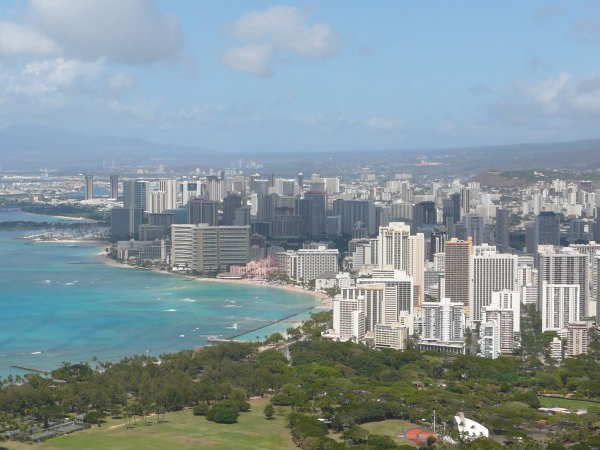 Le front de mer d'HonoluluLe front de mer d'Honolulu est jalonné de marinas pour Yacht, de promenades, d'hôtels luxueux et de restaurants.