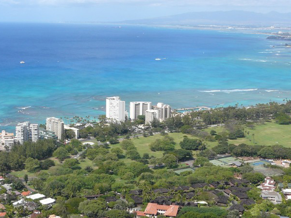 Le front de mer d'Honolulu est jalonné de marinas pour Yacht, de promenades, d'hôtels luxueux et de restaurants.