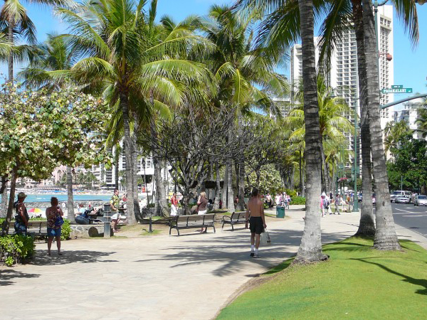 Le front de mer d'Honolulu est jalonné de marinas pour Yacht, de promenades, d'hôtels luxueux et de restaurants.