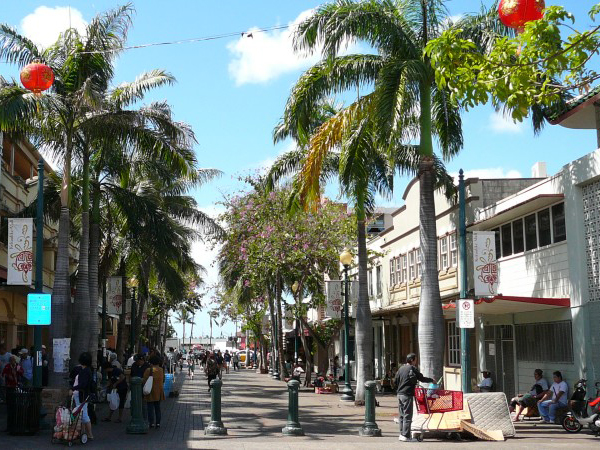 Le quartier asiatique d'Honolulu : Rue piétonne de Chinatown |