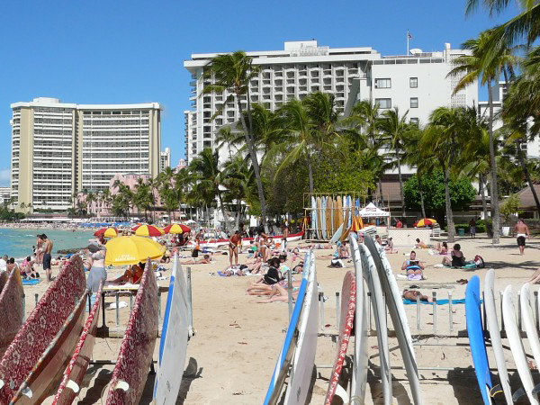 Le front de mer d'Honolulu est jalonné de marinas pour Yacht, de promenades, d'hôtels luxueux et de restaurants.