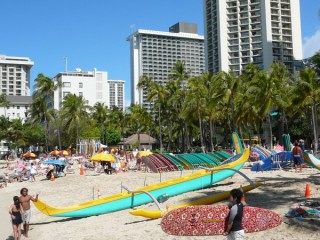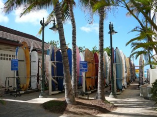 Waikiki est un quartier de Honolulu, sur la côte sud de l'île d'Oahu, Hawaï. Ce quartier est délimité par le canal Ala Wai au nord et à l'est, par le cratère Diamond Head au sud et bien sûr par l'océan pacifique à l'ouest. Waikiki Beach est notamment l'une des plus célèbres plages du monde grâce à ses vagues propices au surf.