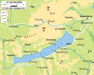 Situé en Hongrie occidentale, le lac Balaton est, avec une superficie de 598 km2, le plus grand lac d'Europe centrale. Étendu tout en longueur, ce lac scintille comme un couteau sous les verdoyants coteaux des monts Bakony. Grâce à son environnement et à la douceur de son climat, ce lac constitue l'un des hauts lieux du tourisme en Hongrie. Il se trouve à environ 1 heure d'autoroute de Budapest.