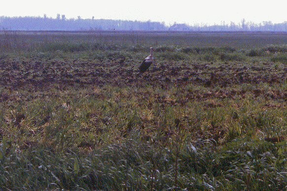 Le parc national de Hortobágy - la Puszta : Une cigogne dans la plaine |