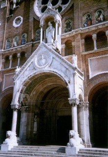La place de la cathédrale est dominée par l'imposante église néo-romane à deux tours en brique rouge, datant des années 1920. Sur cette place se déroule de nombreux festivales en été (théâtre).