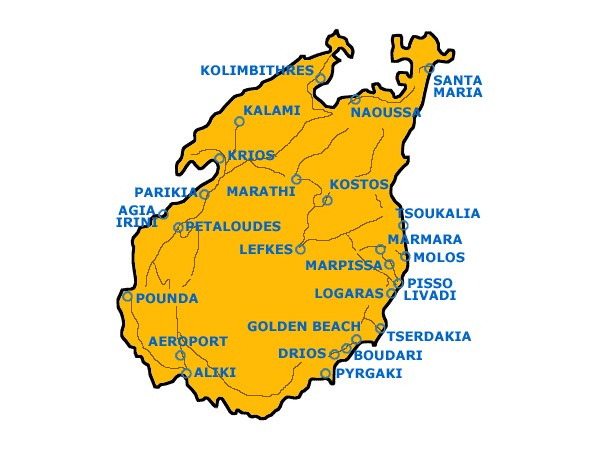 Située dans les Cyclades centrales, entre Naxos, Antiparos et Sifnos, l'île de Paros est de forme ovale. Elle a une superficie de 195 km2, un périmètre côtier de 120 km et une population de 10000 habitants.