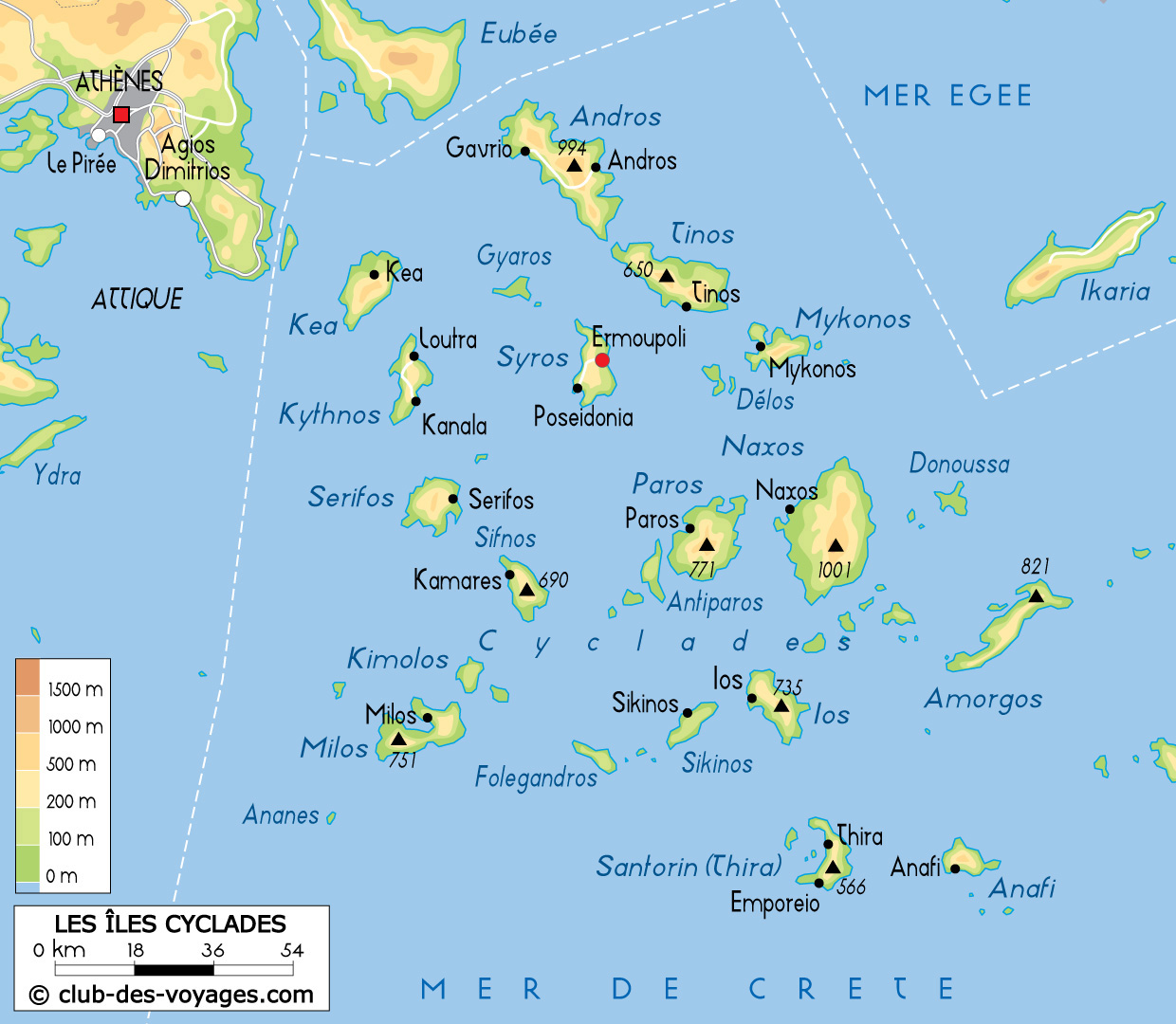 Nos différentes cartes des Iles Cyclades à explorer: carte physique, carte routière, vue satellite. Pour tout savoir sur la géographie des Iles Cyclades.