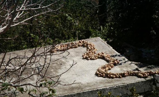 Vie quotidienne à Naxos : Apiranthos - Les oignons sèchent au soleil |