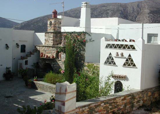 Où s'installer à Sifnos ? : Artemonas - cour décorée à la façon sifniote |