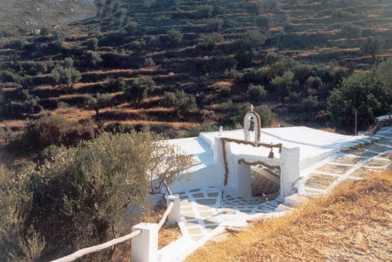 Paysages de Paros : Chapelle au creux d'un vallon |