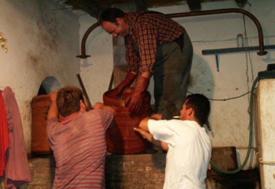 La fabrication du Tsikoudia : Le moût est prêt à être déversé |