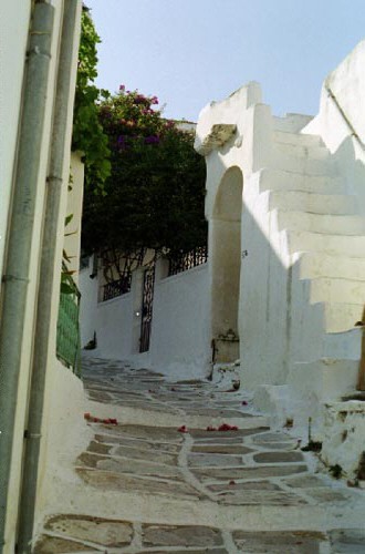 Villages de Paros : Lefkes - Ruelle en escalier |