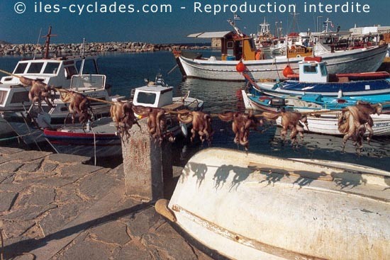 Présentation des Cyclades : Les poulpes sèchent au soleil |