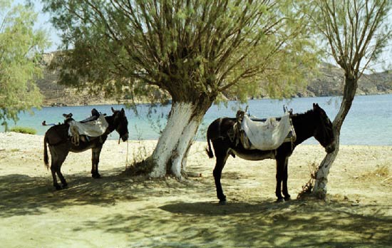 Vie quotidienne à Serifos : Livadi - Les ânes attendent |