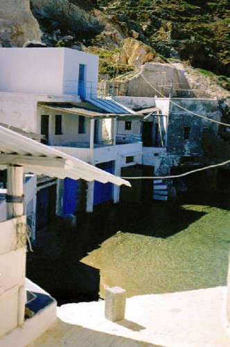 La vie quotidienne à Milos : Maisons et garages à bateaux |