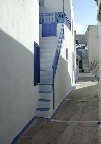Plaka - Milos : Murs blancs, boiseries bleues |