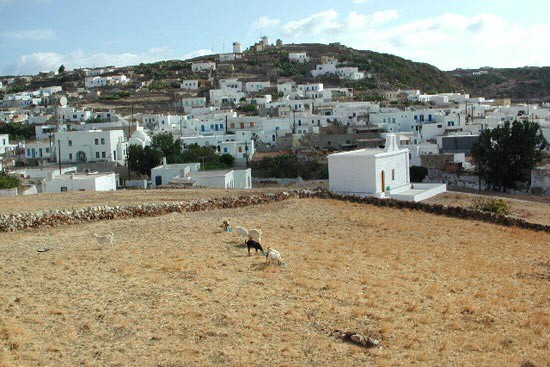Paysages de Kimolos : Vue partielle sur Chorio |