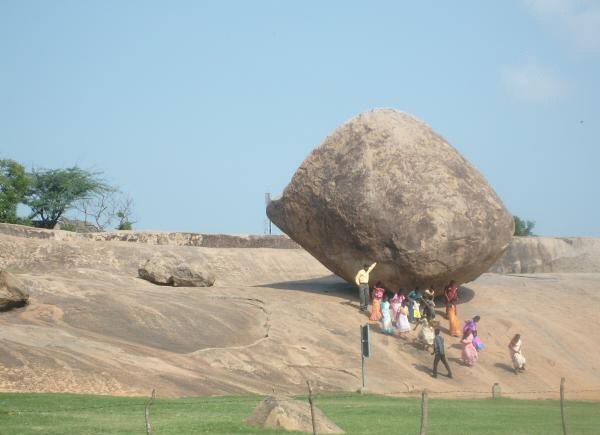 Mamallapuram : le temple : Comme un oreiller, le boc ne tombera pas |