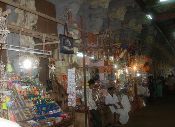 Rameswaram : le temple : L'entrée du temple avec ses commerces |