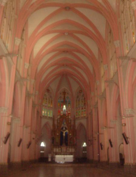 | L'intérieur vide de bancs, pour s'asseoir par terre |