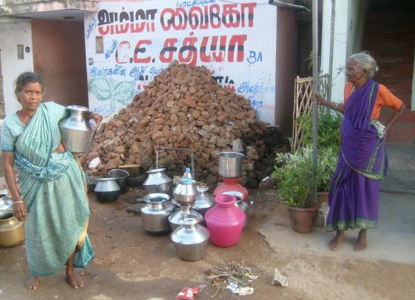 Toujours la même corvée quotidienne des femmes le plein d'eau, pas de distribution dans la maison des plus pauvres