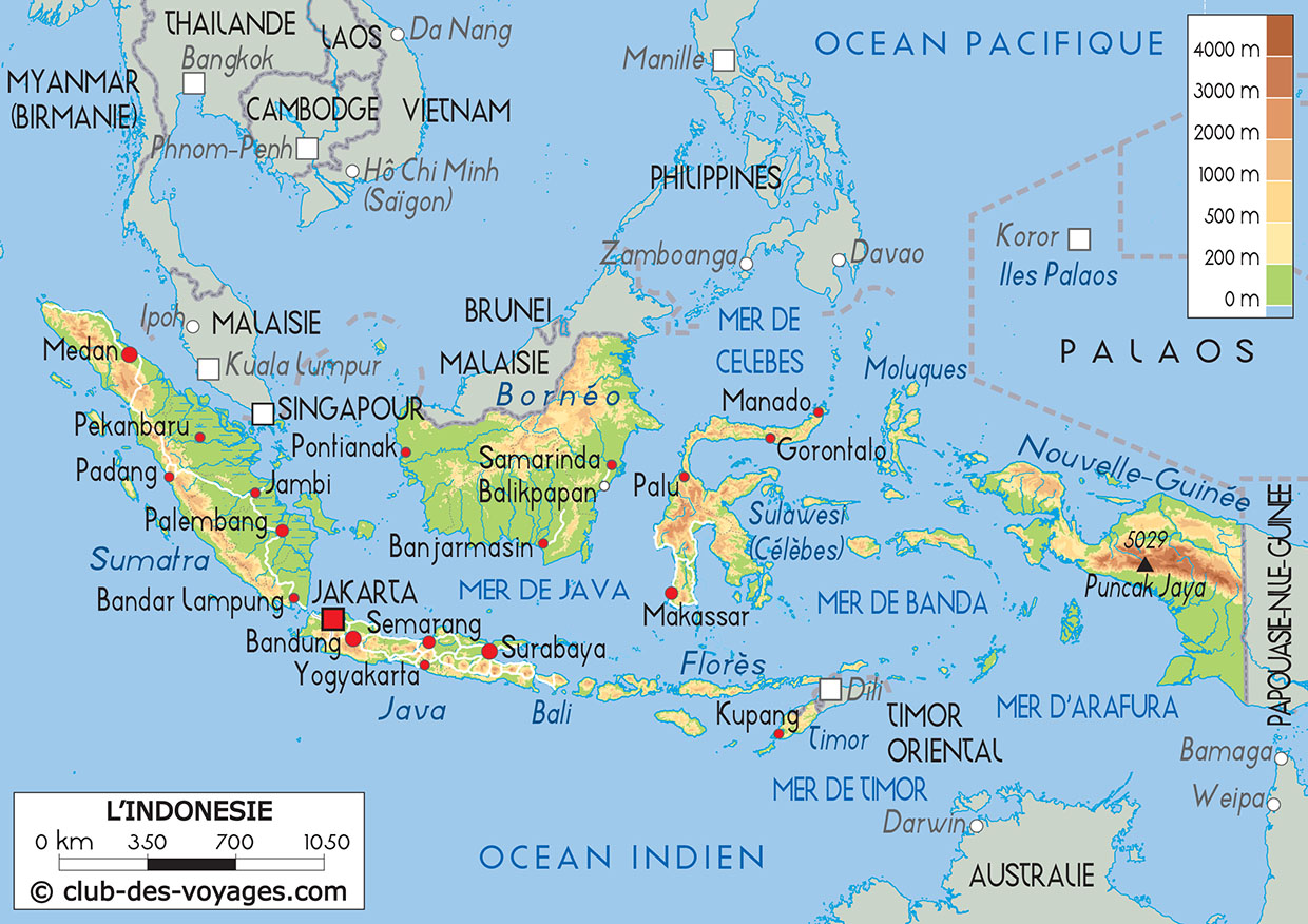 Nos différentes cartes de l'Indonésie à explorer: carte physique, carte routière, vue satellite. Pour tout savoir sur la géographie de l'Indonésie.