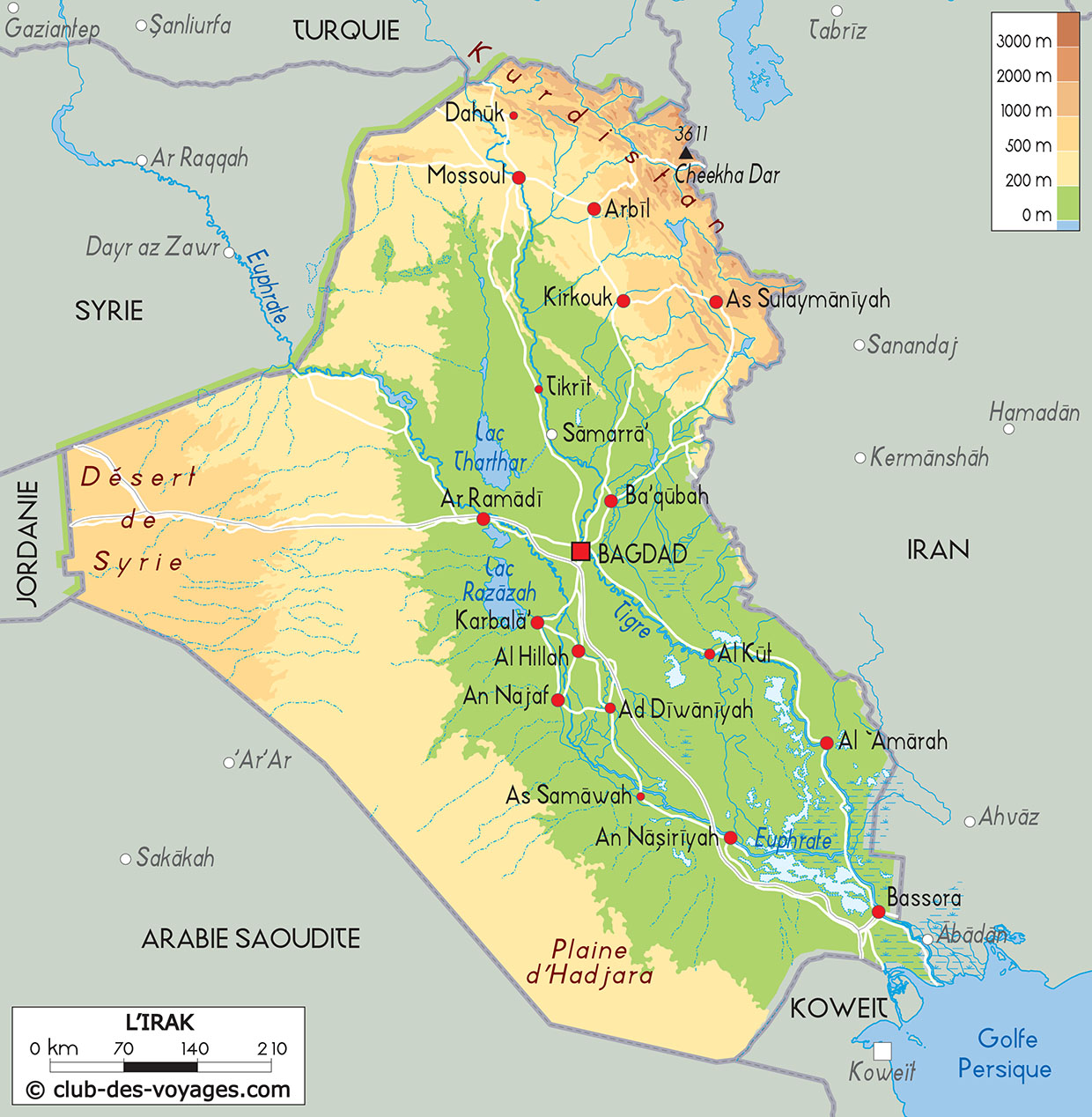 Nos différentes cartes de l'Irak à explorer: carte physique, carte routière, vue satellite. Pour tout savoir sur la géographie de l'Irak.