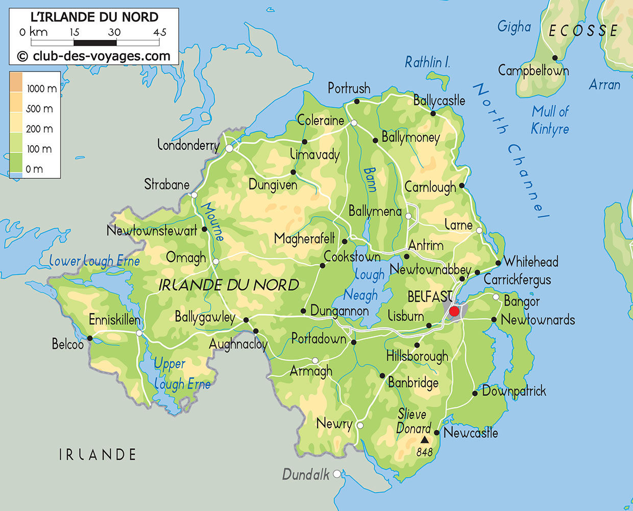 Nos différentes cartes d'Irlande du Nord à explorer: carte physique, carte routière, vue satellite. Pour tout savoir sur la géographie d'Irlande du Nord.