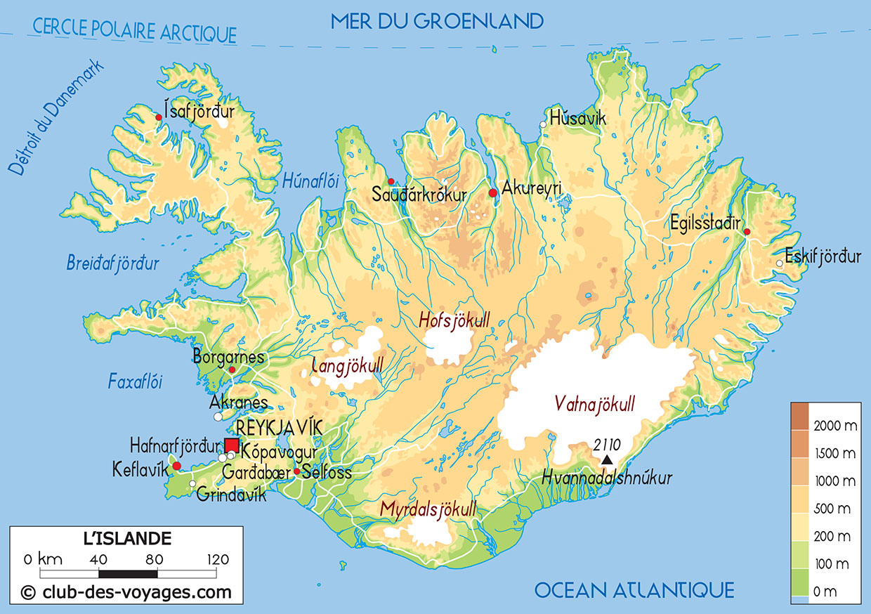 Nos différentes cartes de l'Islande à explorer: carte physique, carte routière, vue satellite. Pour tout savoir sur la géographie de l'Islande.