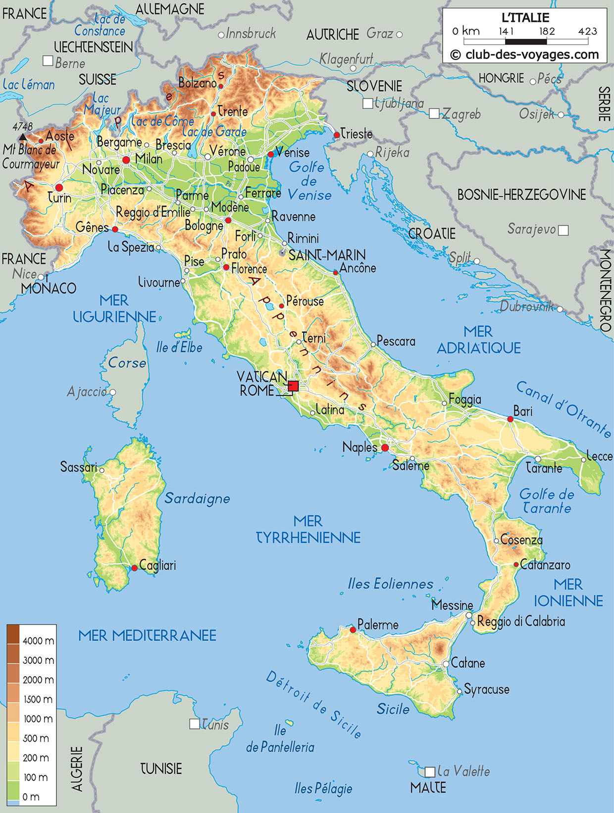 Nos différentes cartes de l'Italie à explorer: carte physique, carte routière, vue satellite. Pour tout savoir sur la géographie de l'Italie.