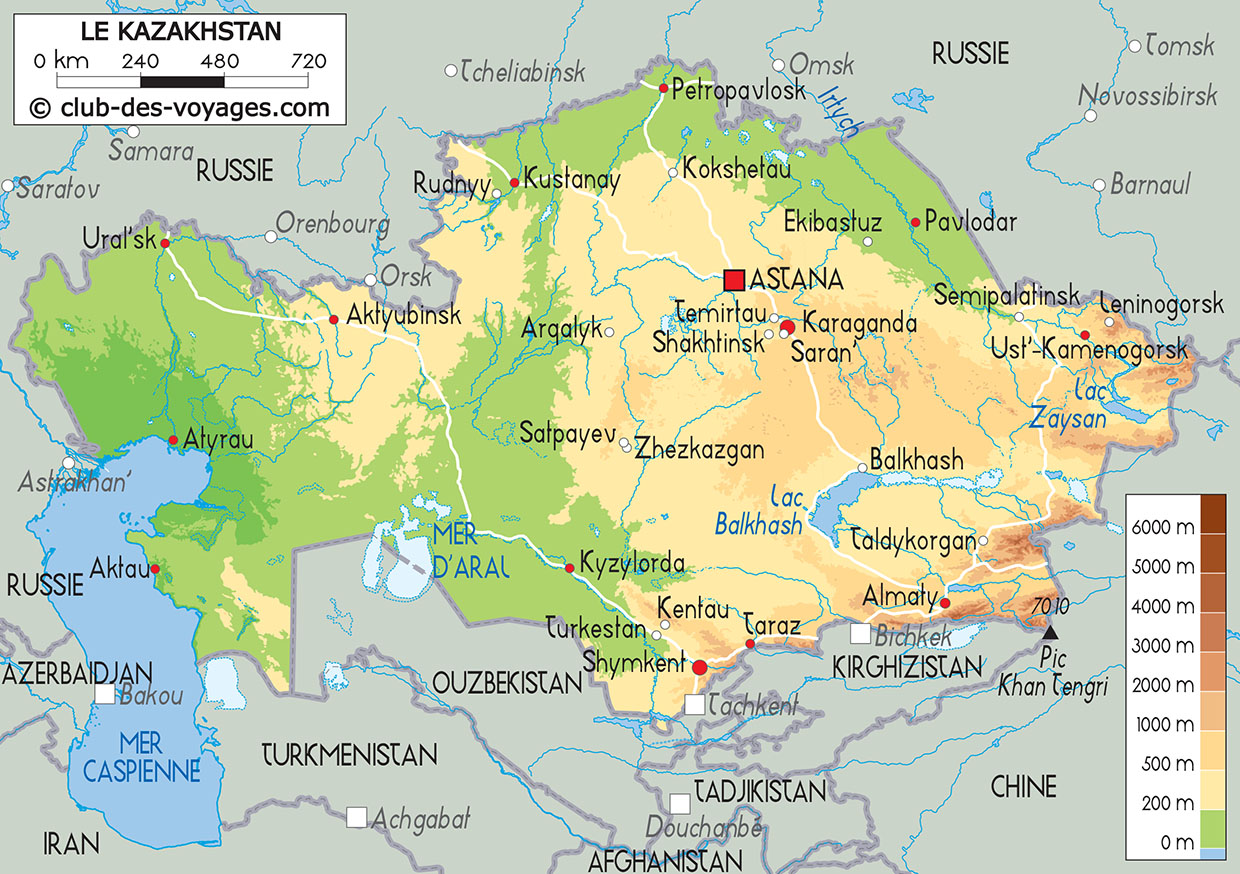Nos différentes cartes du Kazakhstan à explorer: carte physique, carte routière, vue satellite. Pour tout savoir sur la géographie du Kazakhstan.