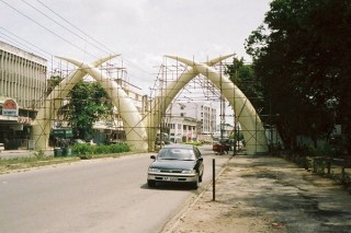 Ces défenses sculptées avec des matériaux modernes sont le symbole de la ville.