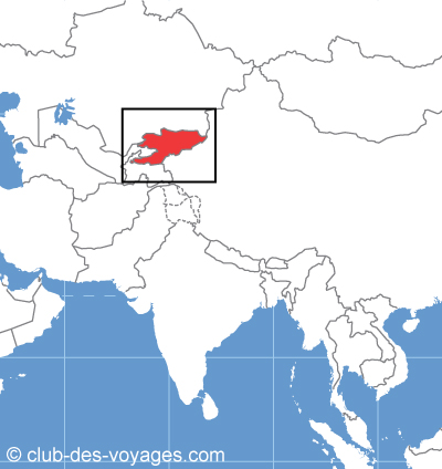 Où se trouve le Kirghizistan ? Il s'agit du territoire en rouge sur la carte ci-dessus ! Le Kirghizistan se trouve en Asie et partage ses frontières avec les territoires suivants: Chine (858 km), Kazakhstan (1051 km), Ouzbékistan (1099 km), Tadjikistan (870 km).