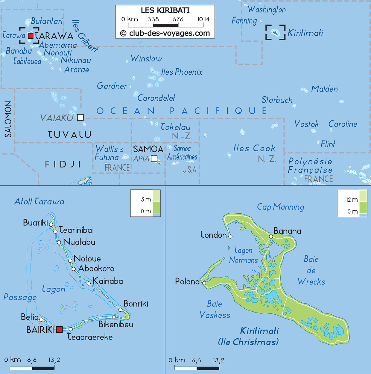 Consultez nos conseils et infos pratiques avant de partir aux Kiribati: monnaie, météo, climat, électricité, santé, sécurité, décalage horaire, etc.
