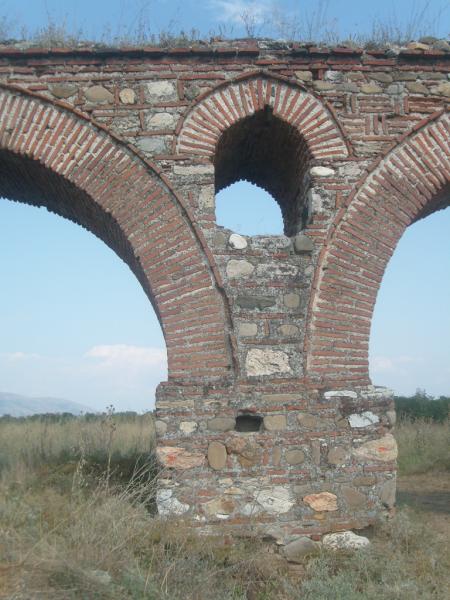 Dans la largeur des pieds, au centre de l’aqueduc, une ouverture en forme d’ogive limite la prise au vent et allége la masse.