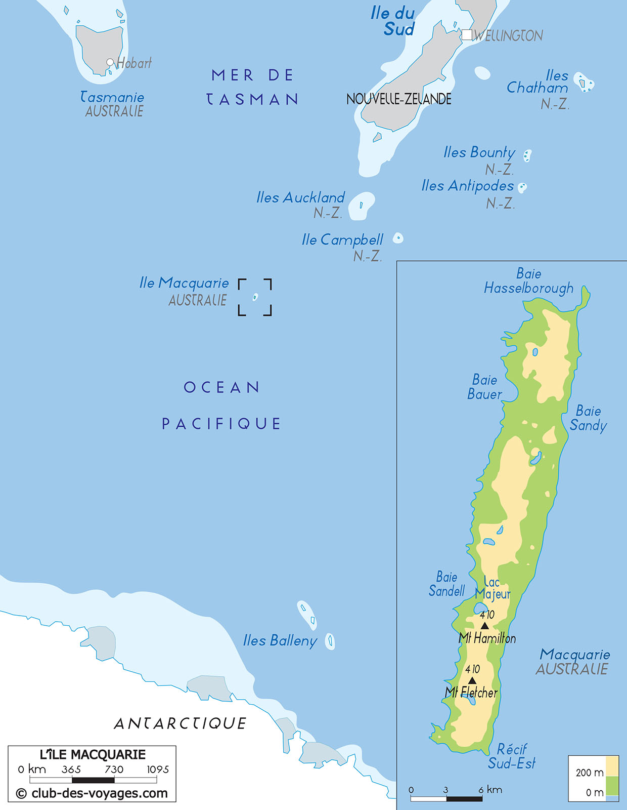 Nos différentes cartes de l'île Macquarie à explorer: carte physique, carte routière, vue satellite. Pour tout savoir sur la géographie de l'île Macquarie.